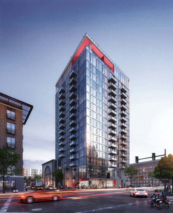 This 20 story high-rise was designed to exemplify the best in modern co-living. The 112 unit building provides apartment suites of 2 – 5 studio rooms around a shared kitchen. Tenants use proprietary technology to connect with suite-mates who share interests and lifestyles. The building design focuses on building community with a strong emphasis on gathering and activity spaces including a large and well-appointed co-working area, modern fitness center, spacious communal kitchen, social lounge, dog run and expansive roof deck with pool, yoga lawn, grills, and fire pit.