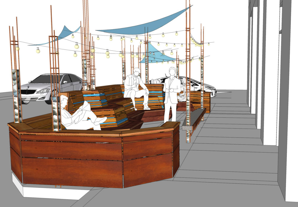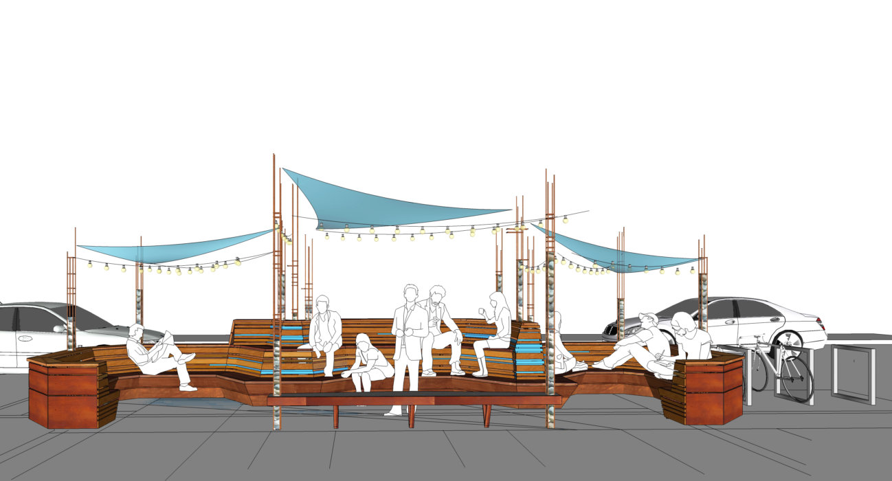 This parklet was designed as a compliment to the new co-work space, The Office, directly adjacent to it. Intended as a general gathering space and not an extension of a cafe or restaurant, the parklet focuses on providing an outdoor casual work environment and setting the stage for conversation, reading and people watching.