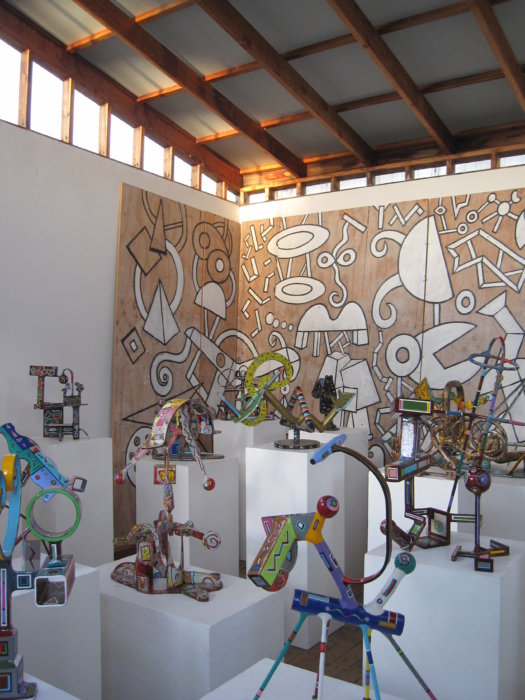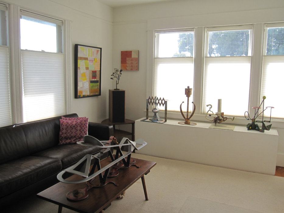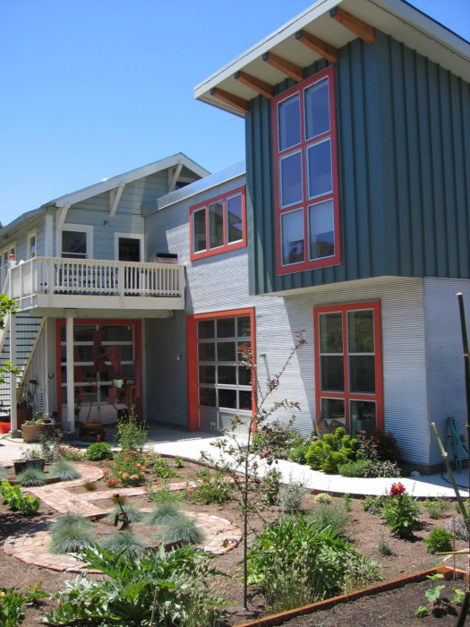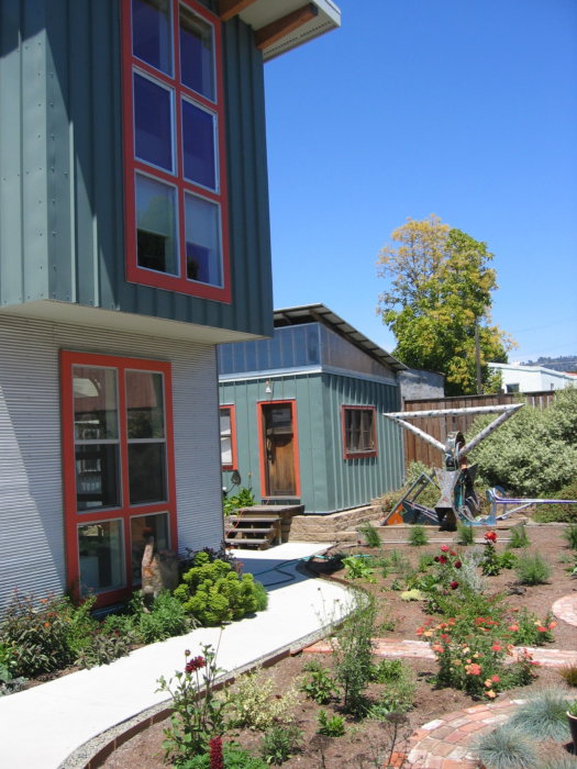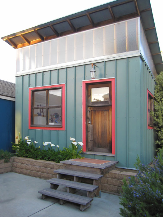 For two artists working in large scale painting and sculpture, we added a large wing onto the back of their small house, creating two art studios (his & hers) on the ground level as well as a master bedroom, new bathroom and kitchen expansion above. Each of the studios has glass and aluminum roll up doors to open onto the garden, fill the space with natural light and allow large sculptures and paintings to be easily moved in and out.