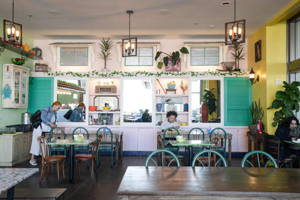 Cholita Linda’s third location is here at the San Francisco Ferry Building, bringing their Latin American flavors and warmth to the edge of the SF bay. Drawing inspiration from the lively ambiance of an outdoor town square in Latin America, this establishment transports patrons to a colorful and bustling marketplace. With its corrugated metal and clay tile awning roofs, large windows inviting natural light, and an eclectic mix of bright colors and vintage objects, the design exudes the warmth and energy of the tropics.