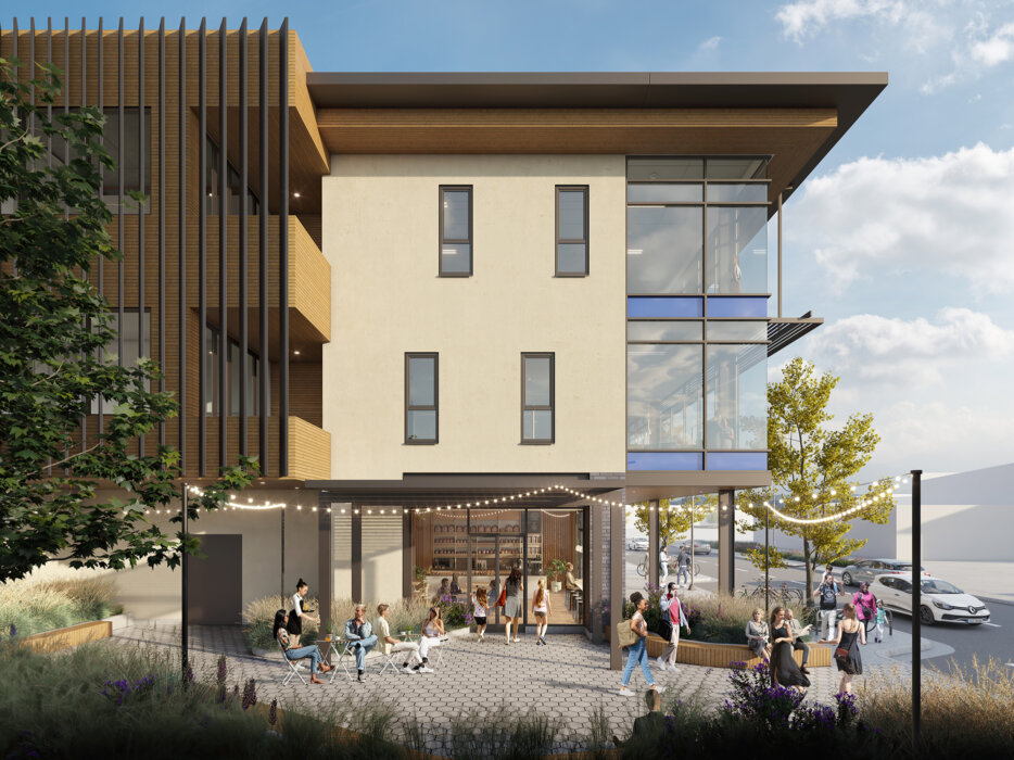 This new 41,000 square foot building is designed to house a variety of life sciences startups in Berkeley’s expanding biotech landscape. The building design allows for different laboratory types, each with integrated office and urban amenity spaces. The building will be constructed to a VC-A (very low) vibration standard, with the MEP systems designed to support a flexible and scalable lab research environment. The mixed-use building also provides ground floor retail and café spaces with outdoor seating for café customers, allowing them to enjoy the sunny south / west facing terrace. The building is a short walk to Berkeley’s Fourth Street shopping district, providing tenants easy access to numerous restaurants, cafes and services.