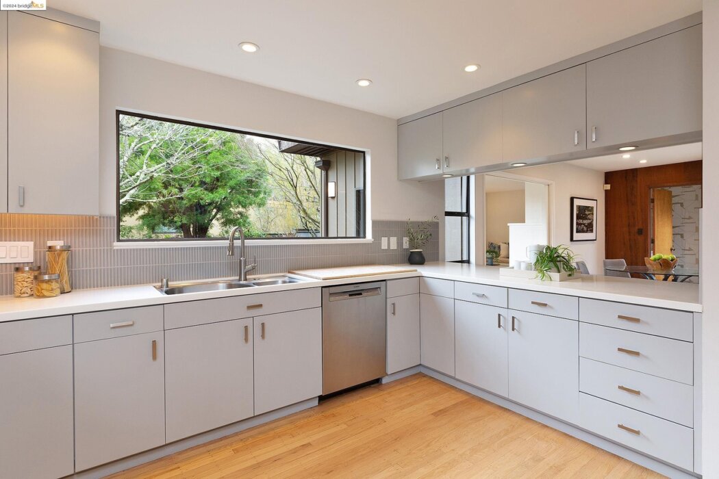 As part of the renovation, the kitchen was reimagined—opened to the dining area to create a more social, light-filled space. The new design pairs clean lines and natural materials with modern lighting, appliances, and finishes that echo the home’s mid-century roots while bringing it into the present.