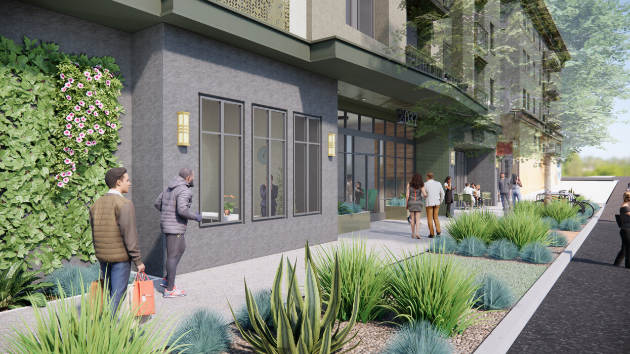 Taking advantage of Berkeley’s temperate weather and the expansive views to the west and south, the design features a variety of outdoor terraces, including a large balcony at the 4th floor and four common balconies at the 5th – 8th floors. The project will replace an automotive body shop with housing and retail just steps to Downtown Berkeley shops, transit options and UC Berkeley.