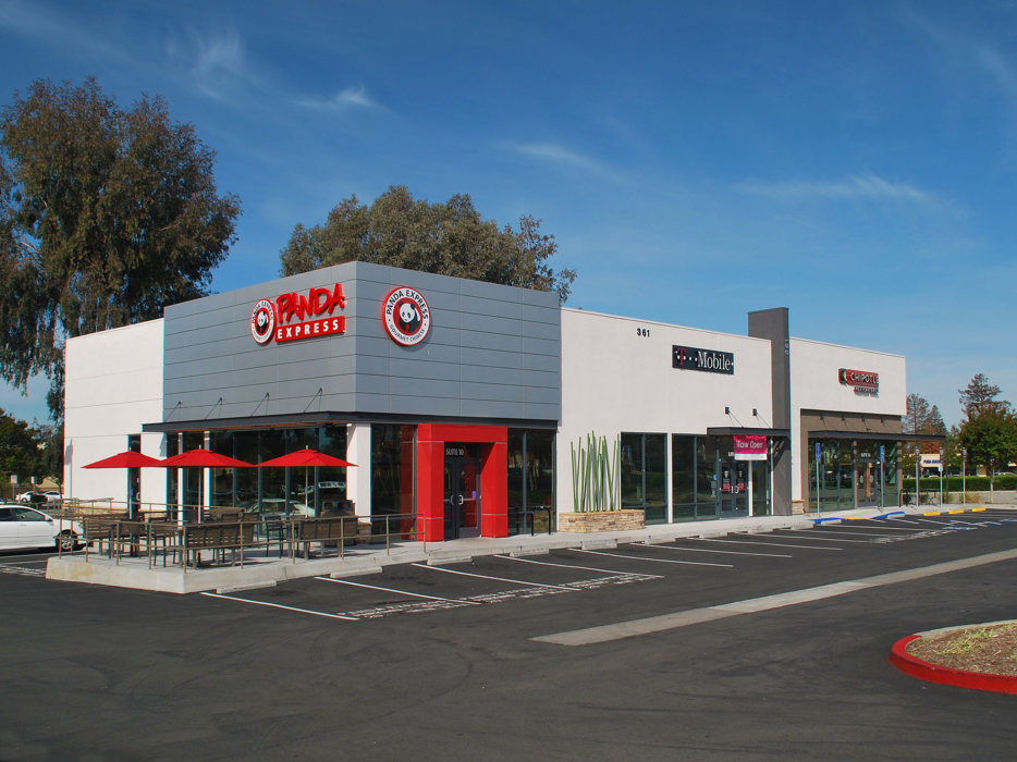 The mission: transform a former Blockbuster Video store into a contemporary retail building with space for two restaurants and a retail new tenant. After redesigning the parking lot to accommodate enough cars to allow for a restaurant use for 2/3 of the building area, we designed a new contemporary building shell and worked with the new tenants, Chipotle and Panda Express, to express the appropriate trade dress for each tenant space.